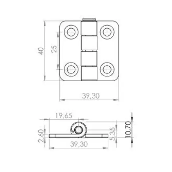 Квадратна, 40х40 мм, 4 отвори, заокруглені кути. Товщина крила 2 мм.