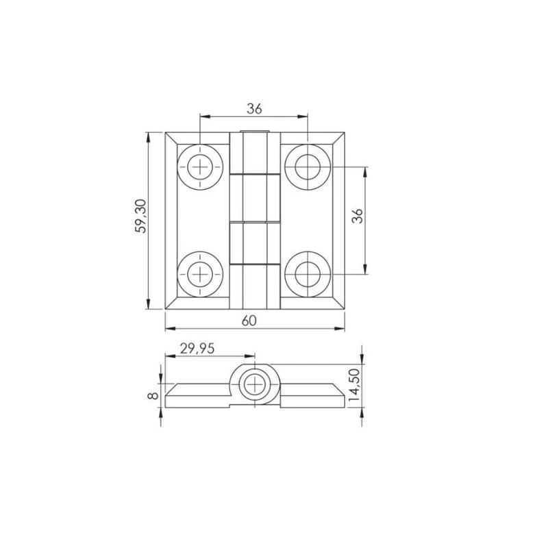 Завіса RZ 430-V1 плоска 60х60 мм Чорний