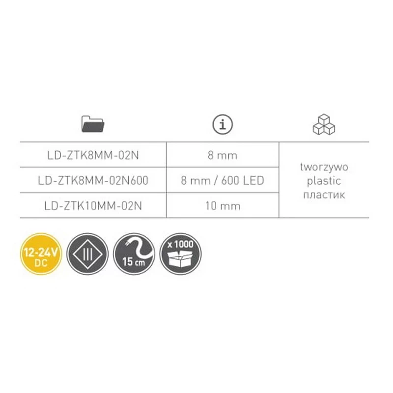 З'єднувач GTV кутовий для світлодіодних стрічок 8 мм з кабелем 15 см 600 LED