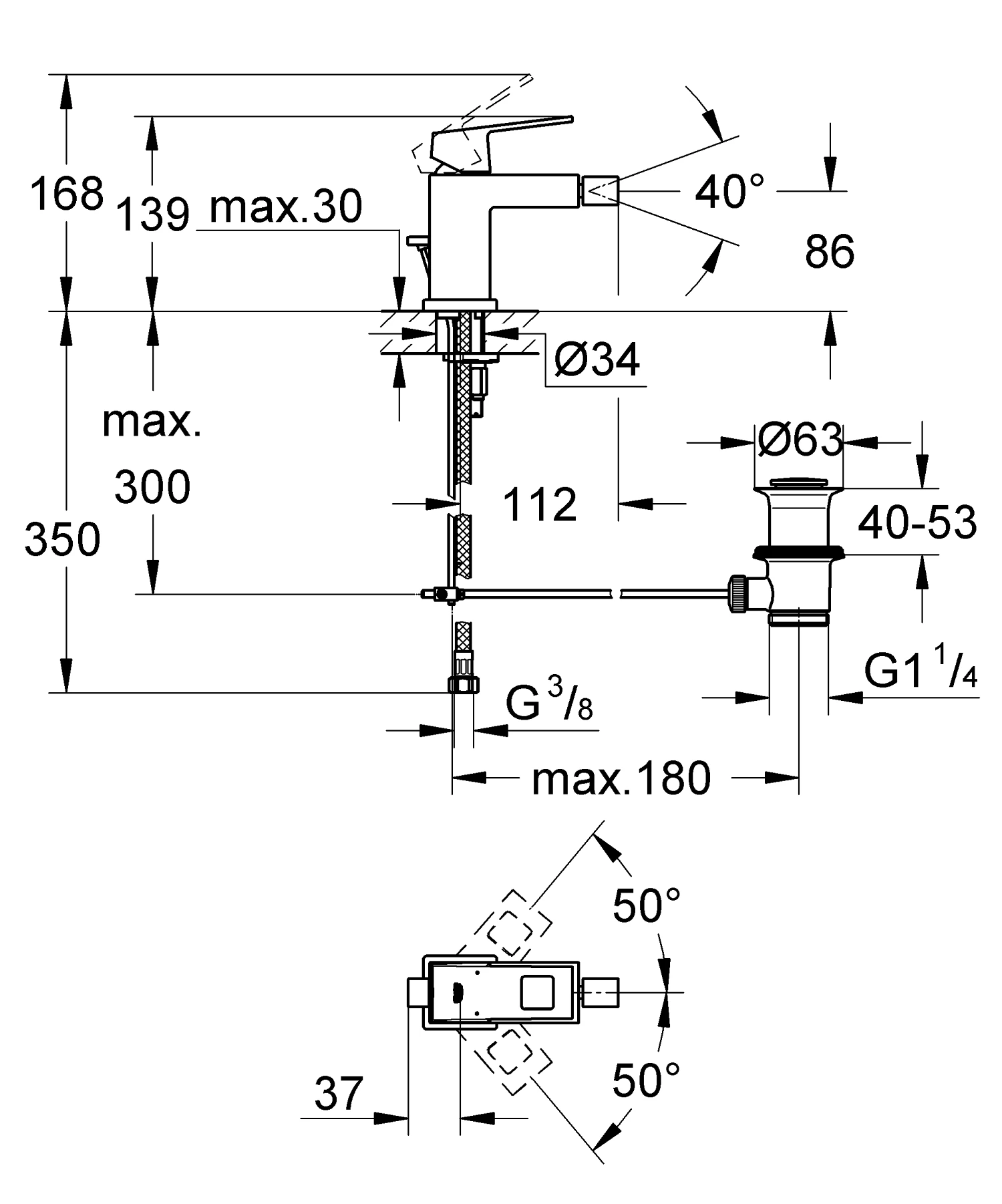 - Висота змішувача 140
