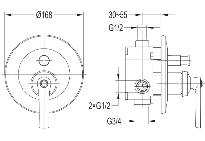 - Тип змішувача внутрішнього монтажу