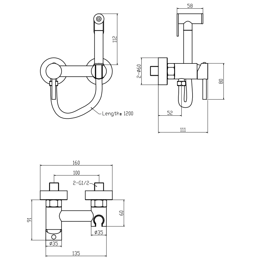 - Комплектація Гігієнічна лійка, корпус, душовий шланг, ексцентри