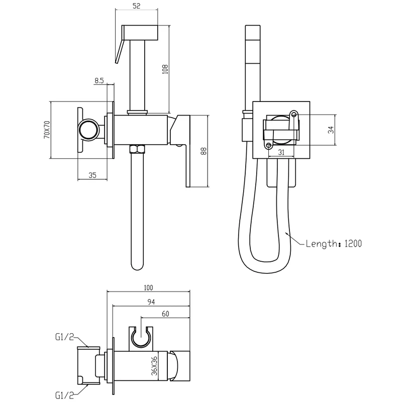 Змішувач для гігієнічного душу Mixxus Premium Kvadro 333 Inner з лійкою (MI6925)