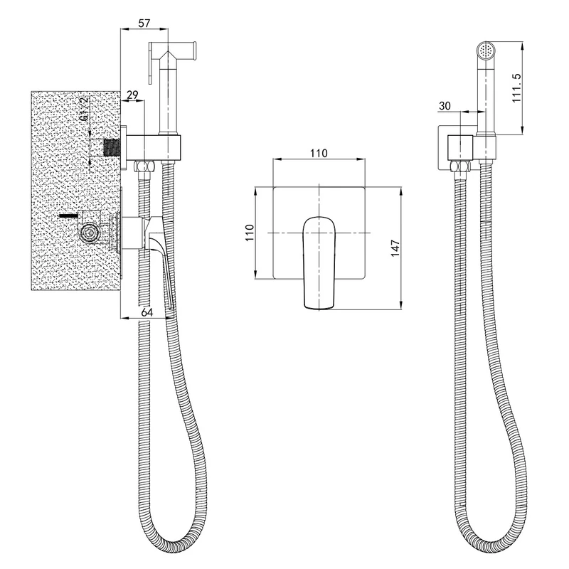 Змішувач для гігієнічного душу Mixxus Premium MONE 002 INNER Black вбудований з лійкою (MI6779)