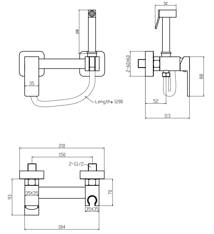 - Комплектація Гігієнічна лійка, корпус, душовий шланг, ексцентри