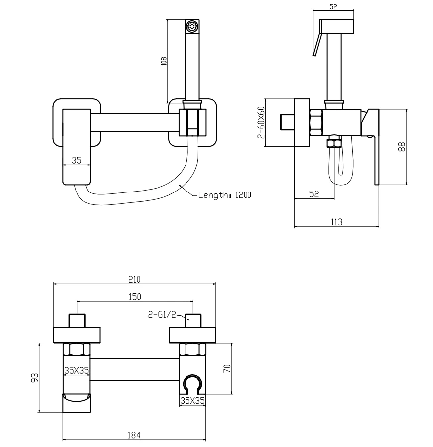 - Комплектація Гігієнічна лійка, корпус, душовий шланг, ексцентри