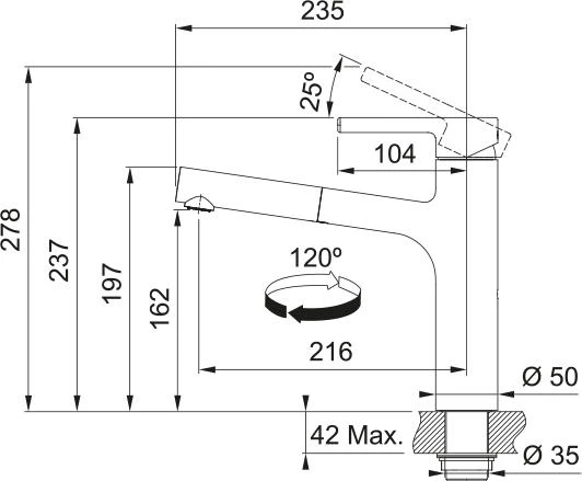Змішувач для кухні Franke Centro, довж.виливу - 235мм, поворотний, 1важіль, чорний матовий