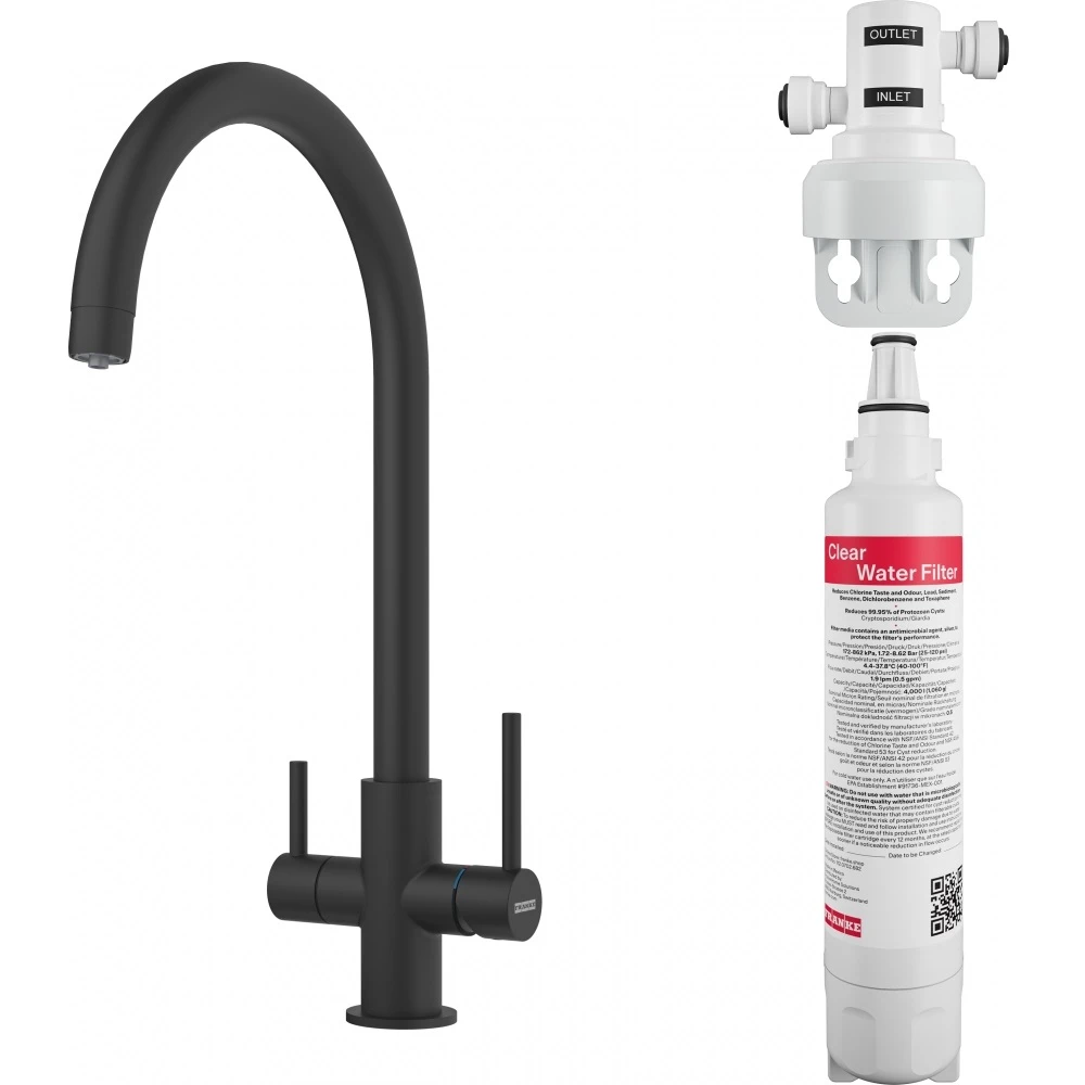 Змішувач для кухні Franke Lina Clear Water, довж.виливу - 216 мм, поворотний, 1+1 фільтр, чорний мат