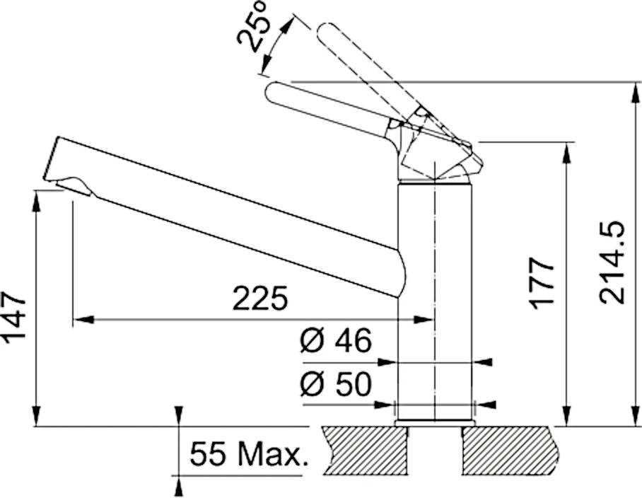 Змішувач для кухні Franke Orbit, довж.виливу - 225мм, 1важіль, хром-сірий камінь
