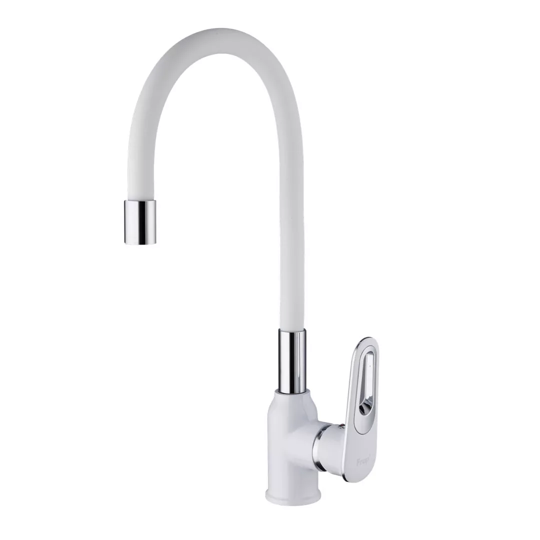 Змішувач для кухні Frap F4049 з гнучким виливом, білий/хром