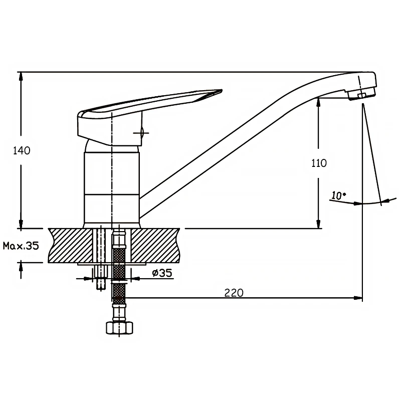 - Висота змішувача 10-15