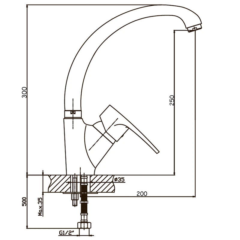 - Висота змішувача 300