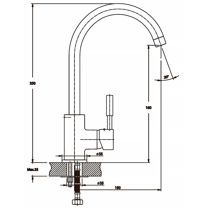 - Висота змішувача 31-35