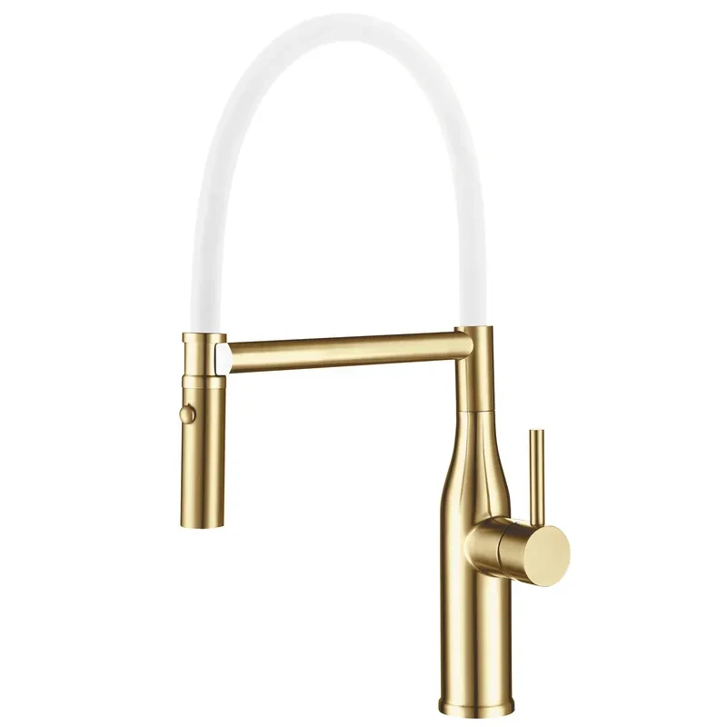 Змішувач для кухні KOER KI-70034-12 з нерж. сталі SUS304 (Колір матове золото+силік.вилив білий) (KR