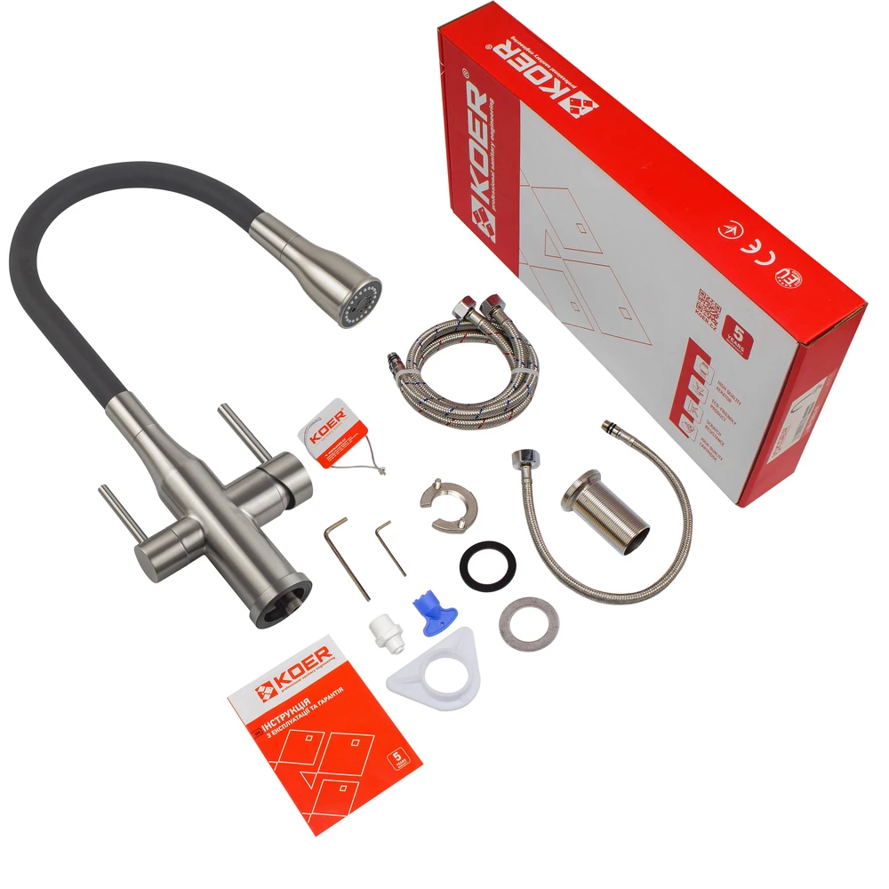 Змішувач для кухні Koer KI-72024-02 з виходом для питної води (нерж. сталь) (KR5011)