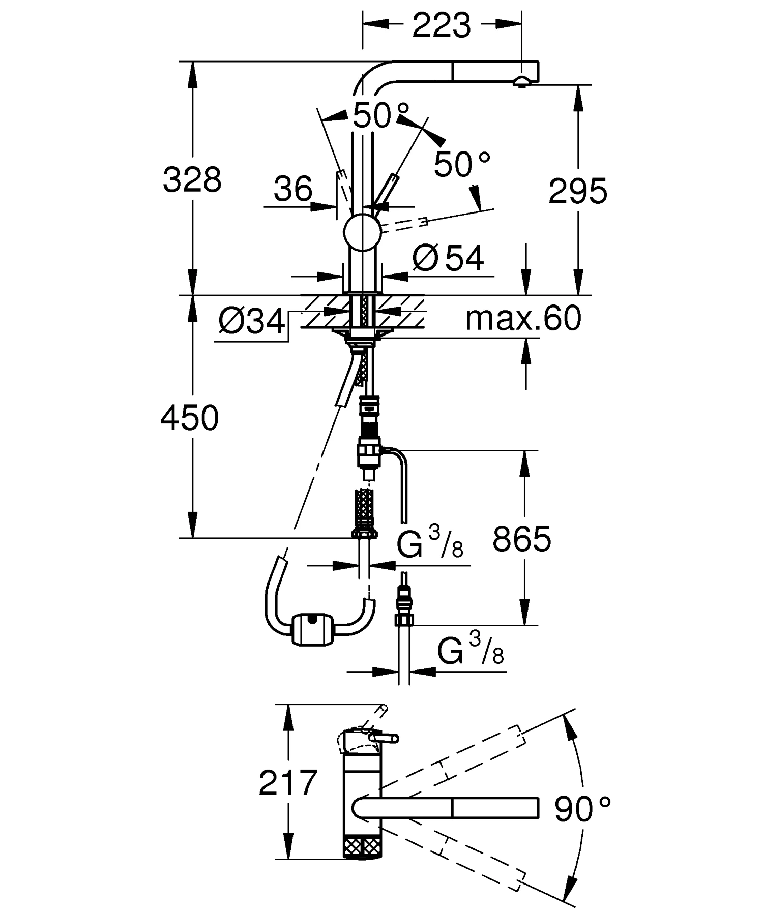 - Діаметр шланга підключення 3/8