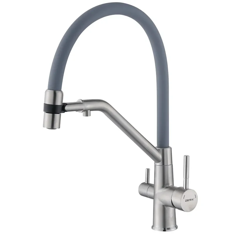 Змішувач для кухні з силіконовим виливом Zerix MAG-021 Refl.Gray з нерж. сталі SUS304 з виходом для