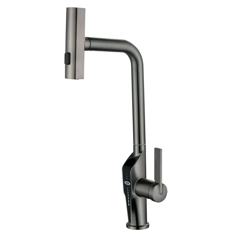 Змішувач для кухні з висувною лійкою Mixxus FALCON 014 GRAPHITE, 4 режими,з індикатором температури