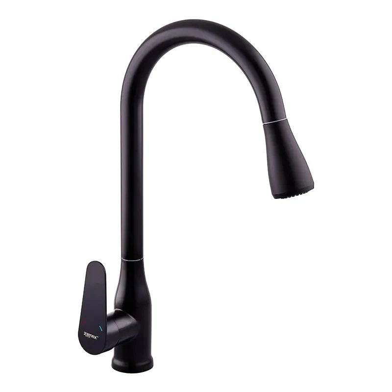 Змішувач для кухні з висувною лійкою Zerix PUL-014 Black з нерж. сталі SUS304 (кол. чорний) (ZX5035)