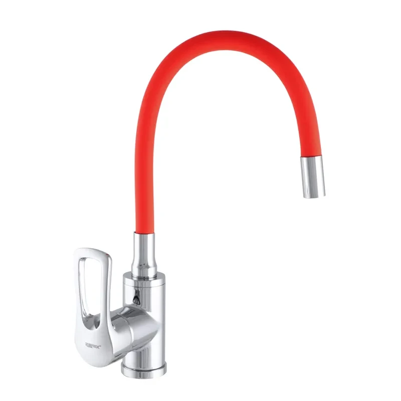 Змішувач для кухні Zerix SAR 181 з червоним силіконовим виливом (ZX2672)