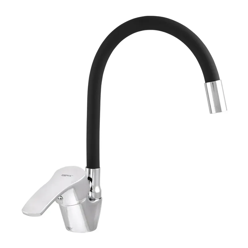 Змішувач для кухні Zerix YUB 279 с чорним гнучким виливом (ZX0439)