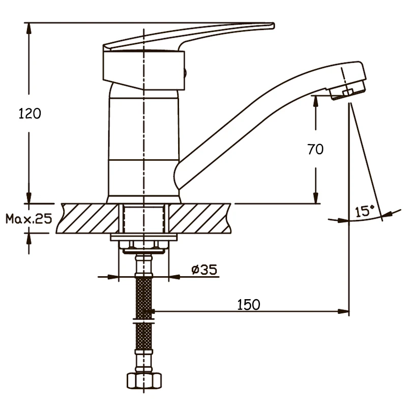 - Висота змішувача 10-15