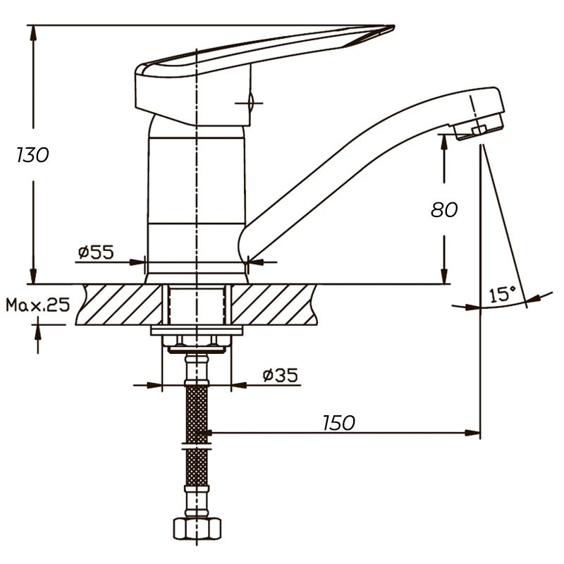 - Висота змішувача 10-15