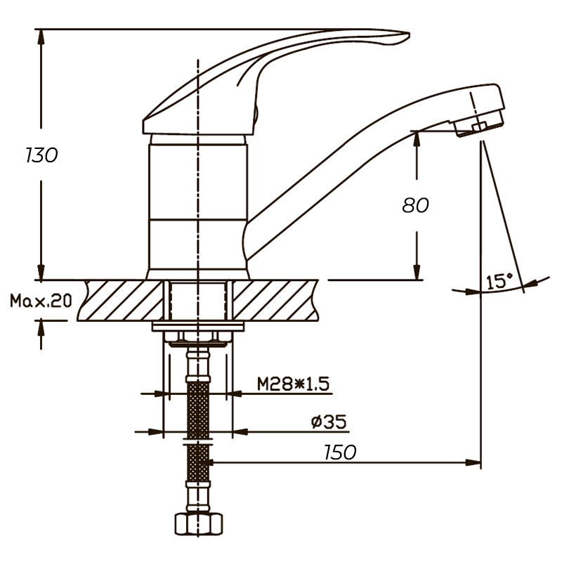 - Висота змішувача 10-15