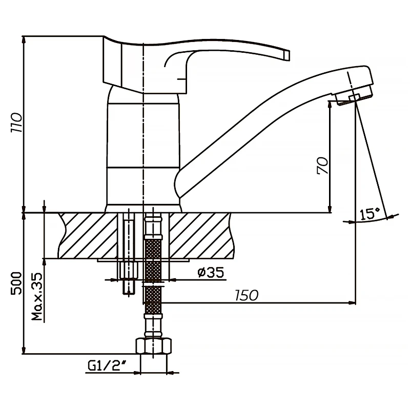 - Висота змішувача 10-15