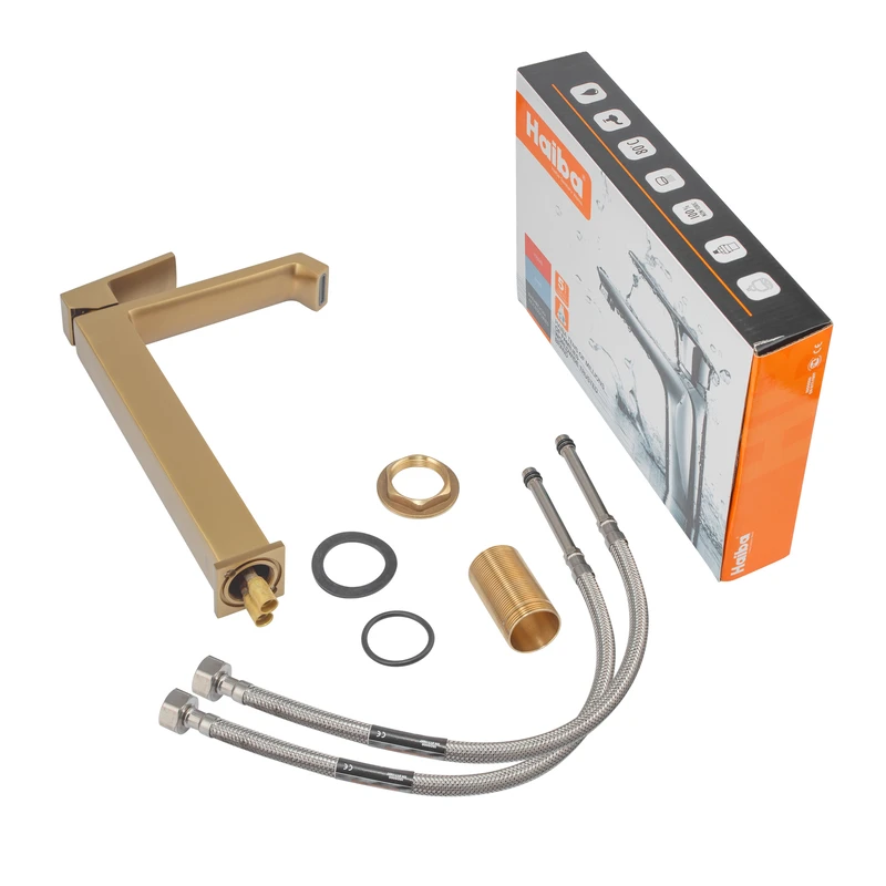 Змішувач для умивальника Haiba GAUDI 001 (HIGH) BRUSHED GOLD (HB9597)