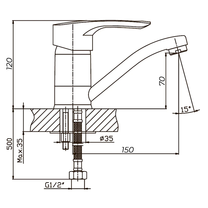 - Висота змішувача 10-15