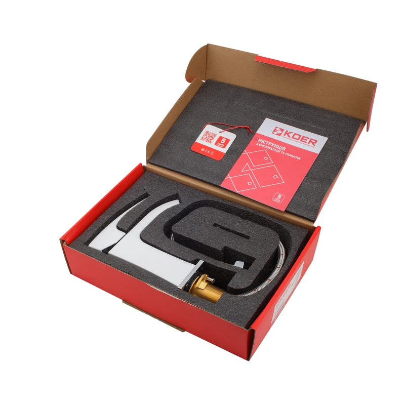 Змішувач для умивальника Koer KB-12007-04 (Колір хром+білий) (KR5151)