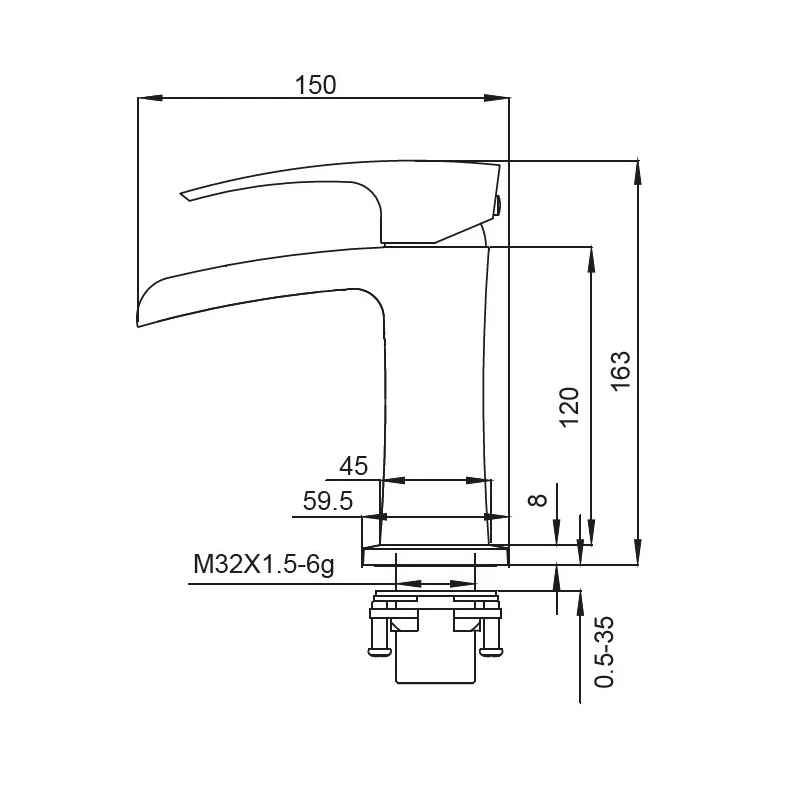 - Загальна довжина 150 мм