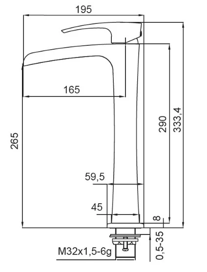 - Висота змішувача 31-35