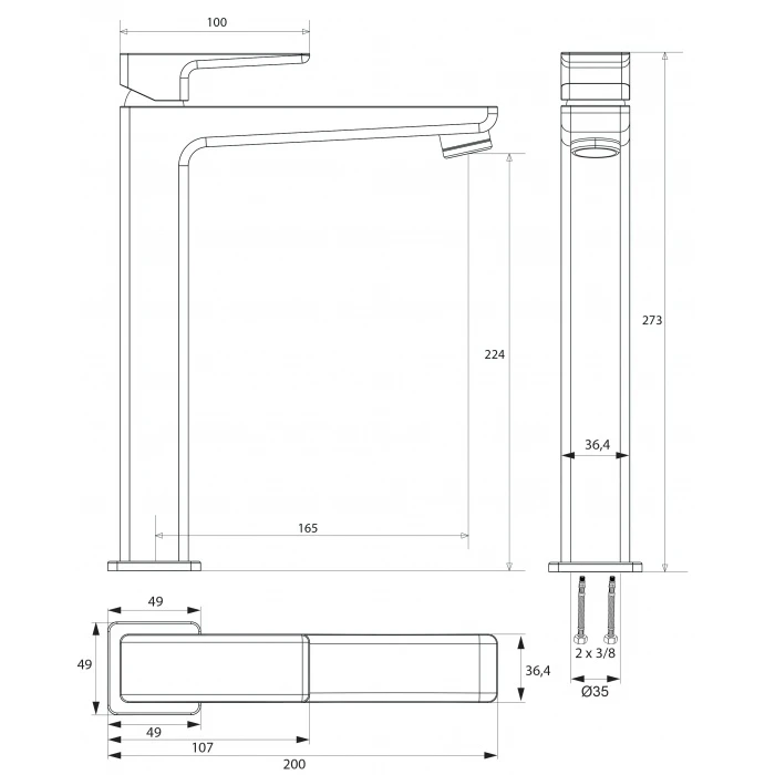 змішувач для умивальника Omnires Parma високий chrom (PM7412CR)
