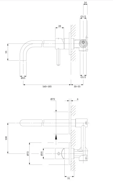 змішувач для умивальника Omnires Y прихованого монтажу brushed gold (Y1215HGLB)