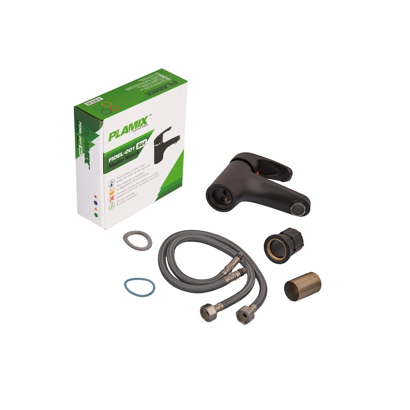Змішувач для умивальника Plamix Fidel-001 SET Matte black (з підведенням) (PM0660)