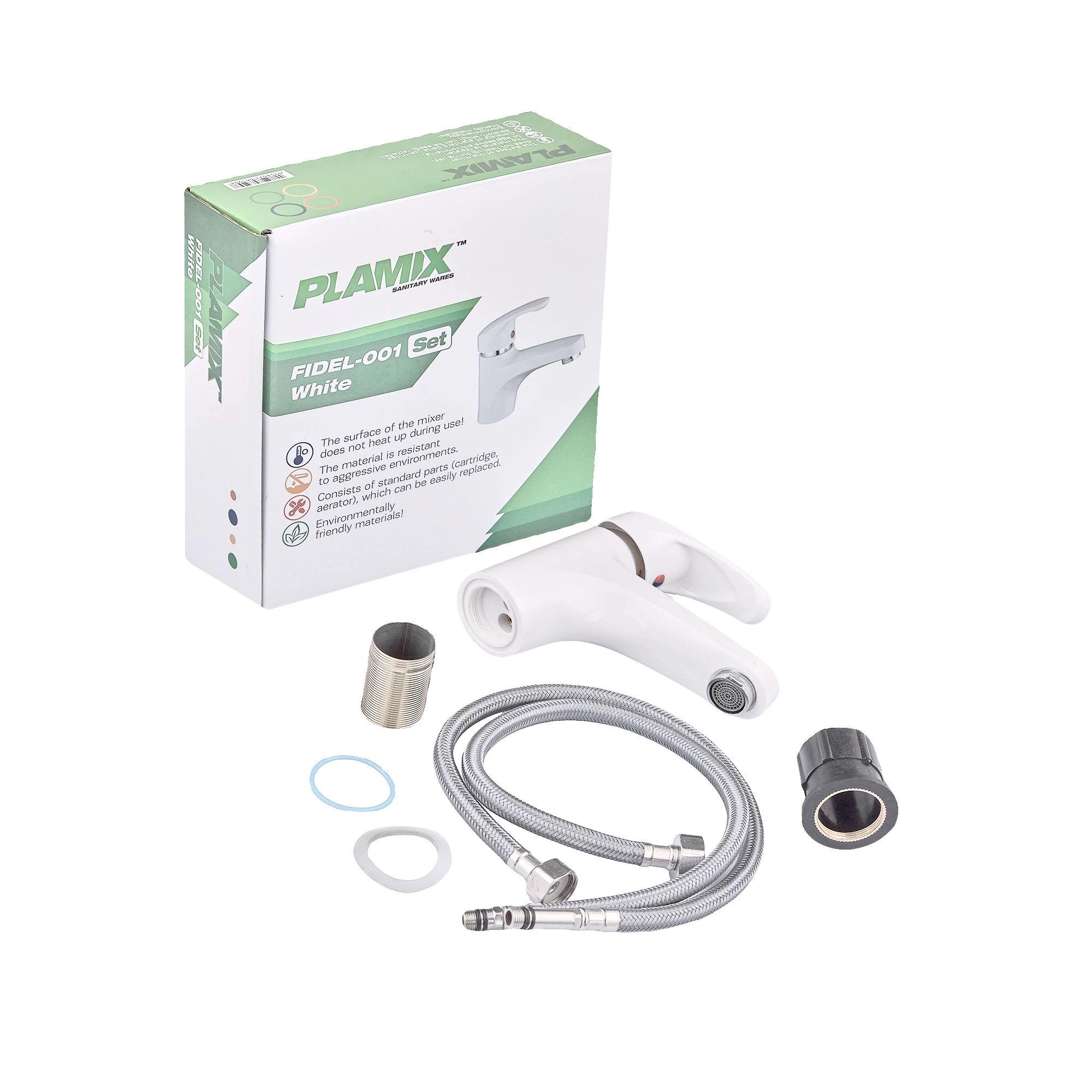 Змішувач для умивальника Plamix Fidel-001 SET White (з підведенням) (PM0659)