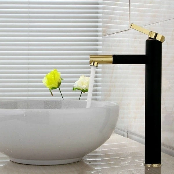 змішувач для умивальника Rea Smart чорний, золото, високий (REA-B7402)