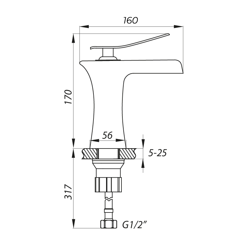 Змішувач для умивальника ZERIX LR1055-23 з виливом "Водоспад" (LL1563)