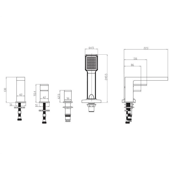 змішувач для ванни Omnires Baretti на 4 отвори chrome (BA7832CR)