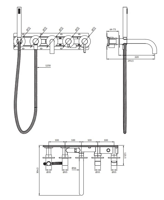 змішувач для ванни Omnires Y на 5 отворів brushed copper (Y1237/1CPB)