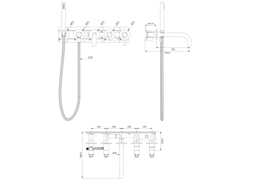 змішувач для ванни Omnires Y на 5 отворів chrome (Y1237/1CR)