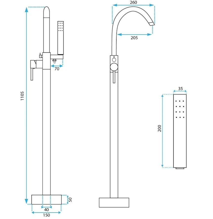 змішувач для ванни Rea Lungo окремостоящий, brushed gold (REA-B7498)