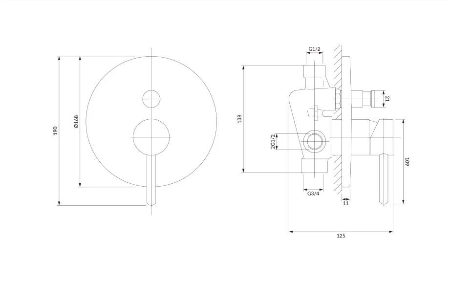 змішувач для ванни та душу прихованого монтажу Omnires Y copper (Y1235CP)