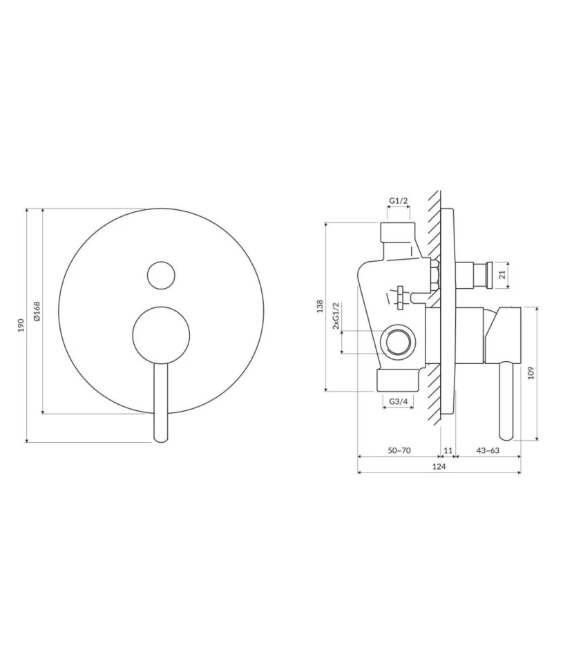 змішувач для ванни та душу прихованого монтажу Omnires Y white matt (Y1235WM)