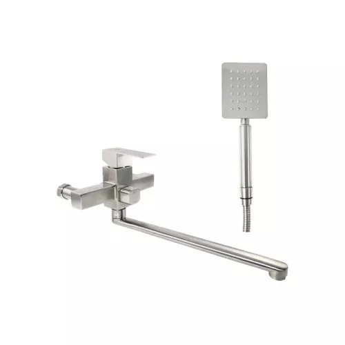 Материал: пищевая нержавеющая сталь марки SUS304. Тип корпуса: однорычажный, с переключателем кран/душ. Излив: длинный, поворотный. Высота смесителя: 14 см. Длина излива: 32 см. Комплектация: смеситель, крепления, шланг для душа 150 см, лейка.