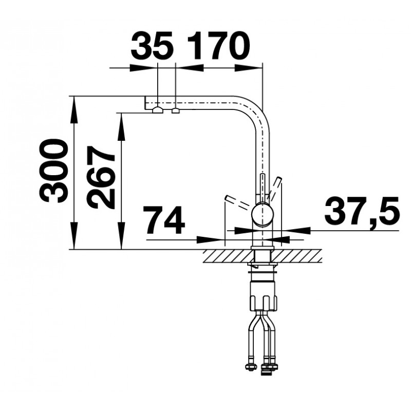 - Потрібен отвір під змішувач Ø 35 мм