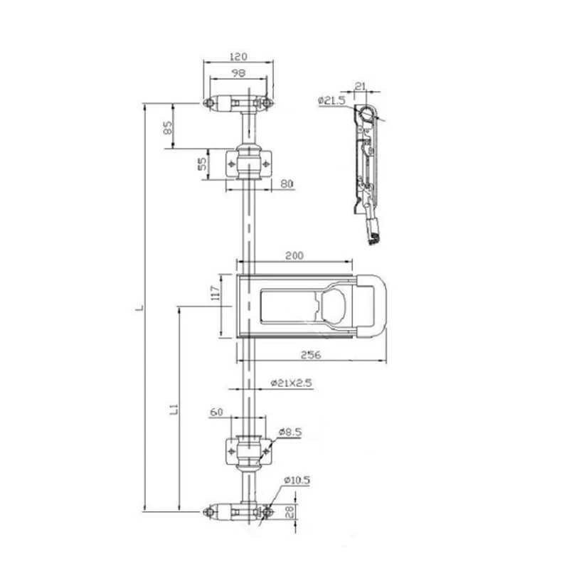 Запірний замок для напівпричепів діаметром 22 мм із цинковим покриттям — це надійний елемент дверної фурнітури, який забезпечує герметичне та стійке замикання стулок при транспортуванні. Виготовлений із міцної сталі з гальванічним шаром цинку, він ефективно захищений від корозії та механічного зношування. Конструкція розрахована на тривале використання в умовах вібрацій, перепадів температур і впливу вологи. Замок дозволяє рівномірно розподіляти навантаження по штоку, зменшуючи ризик деформацій і люфту при закритті дверей напівпричепа.