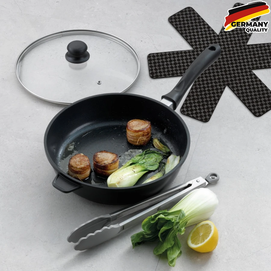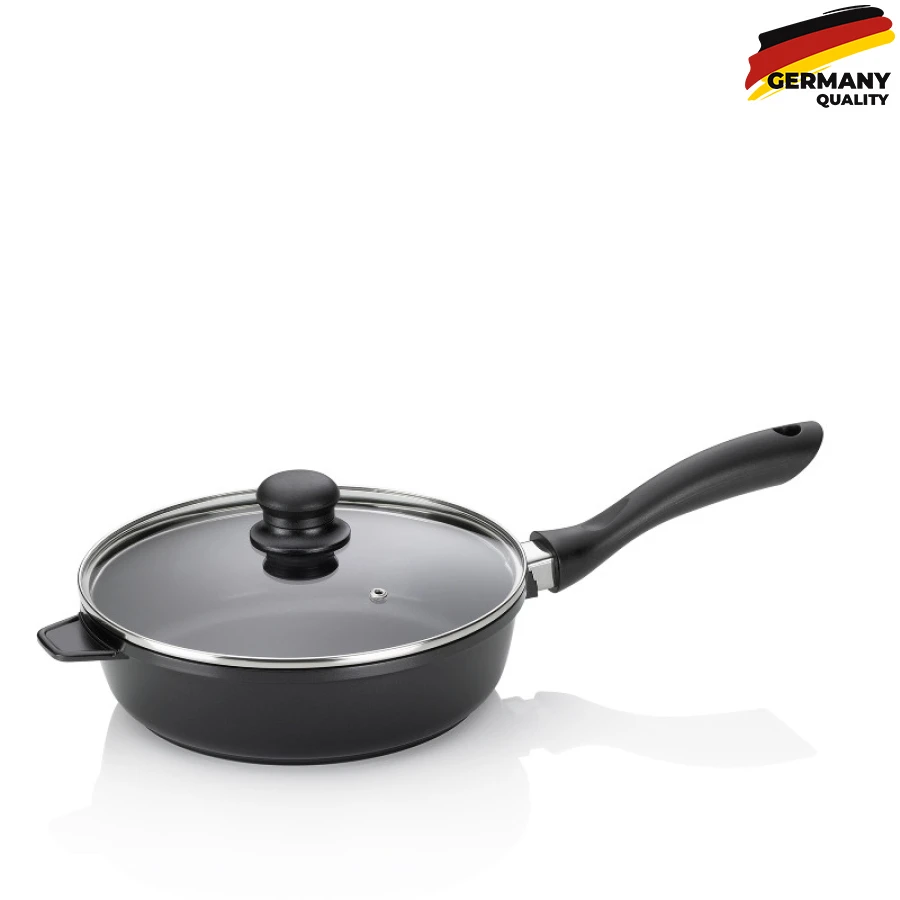 Сковорода KELA Gabor діаметром 28 см зі скляною кришкою та захистом виготовлена з литого алюмінію з антипригарним покриттям.